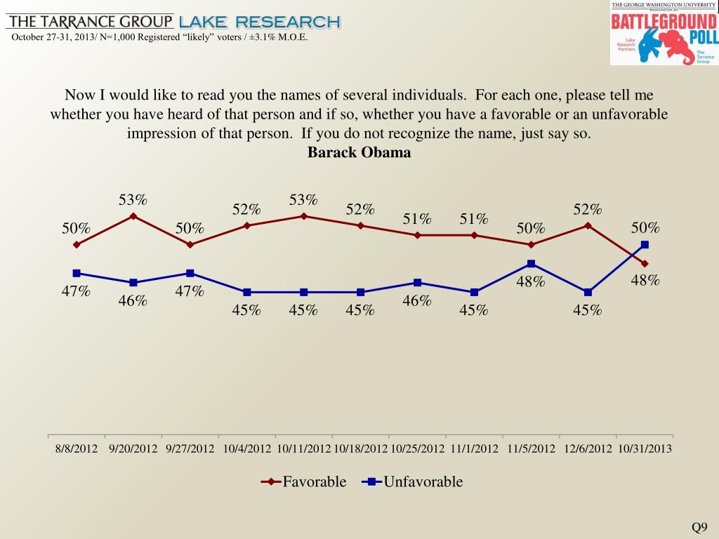 Now I would like to read you the names of several individuals. For each one, please tell me whether you have heard of that person and if so, whether you have a favorable or an unfavorable impression of that person. If you do not recognize the name, just say so. Barack Obama Q9