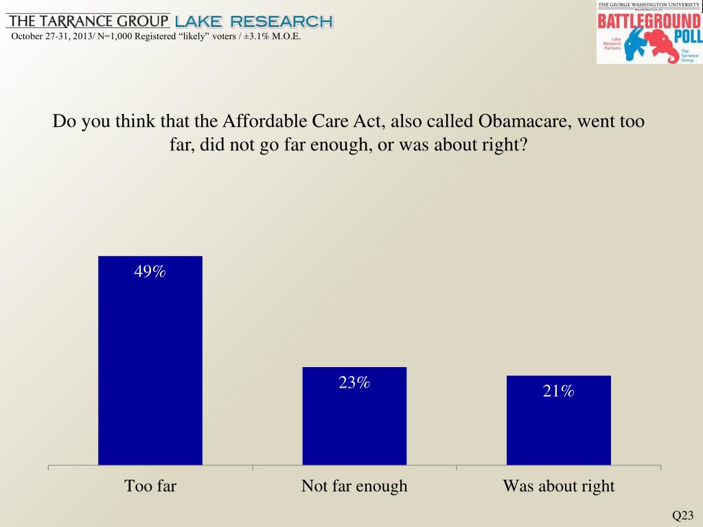 Do you think that the Affordable Care Act, also called Obamacare, went too far, did not go far enough, or was about right? Q23