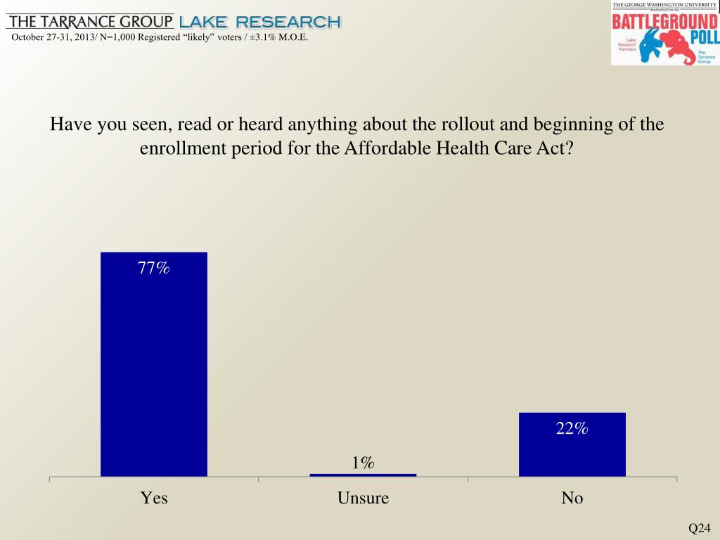 Have you seen, read or heard anything about the rollout and beginning of the enrollment period for the Affordable Health Care Act? Q24