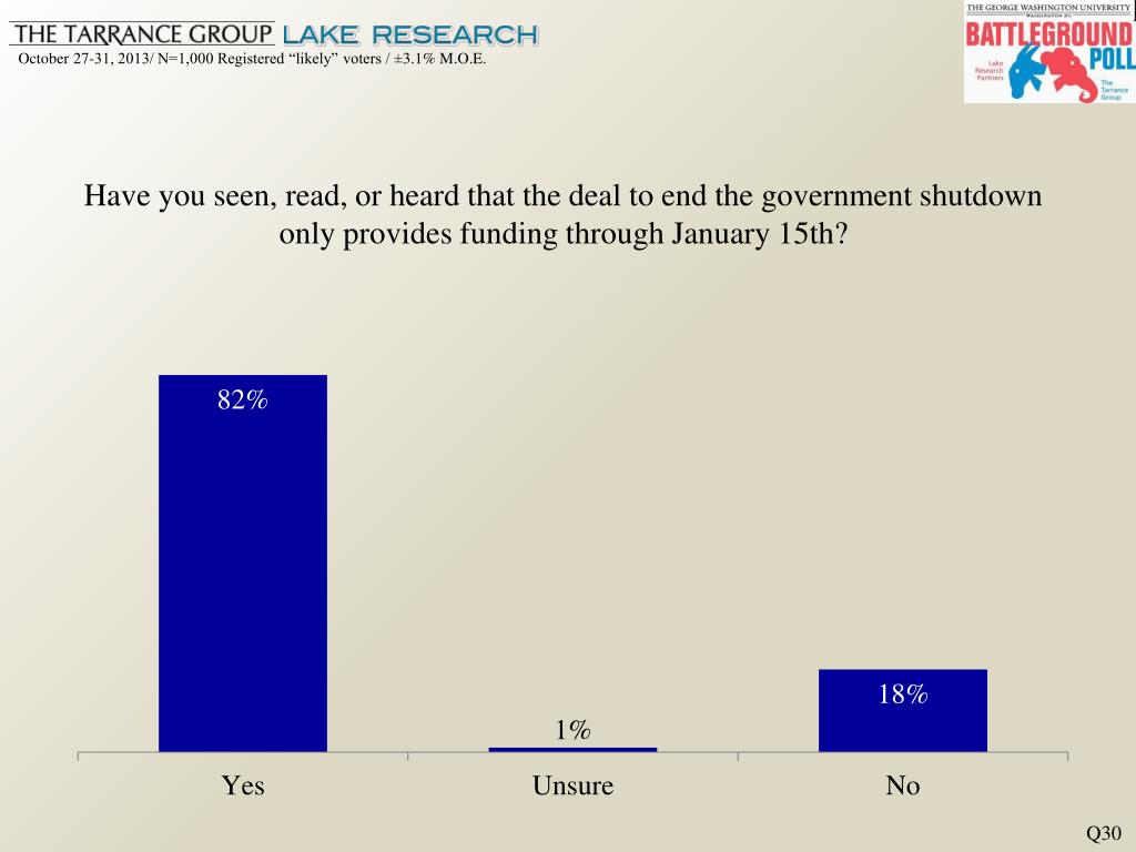 Have you seen, read, or heard that the deal to end the government shutdown only provides funding through January 15th? Q30
