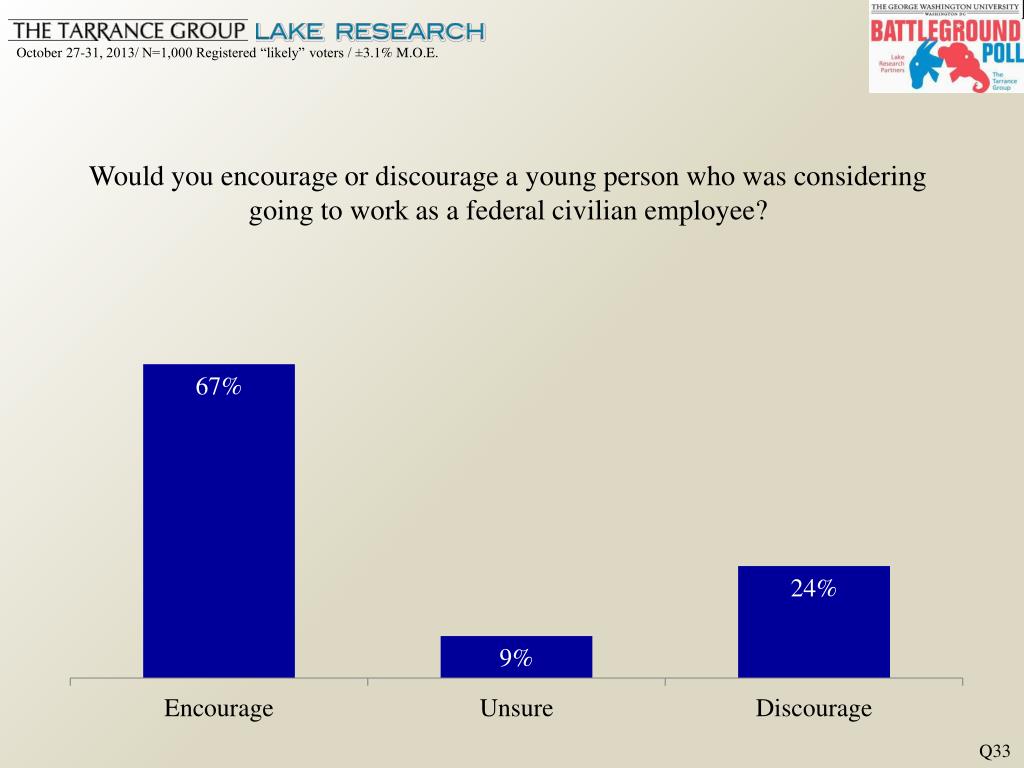 Would you encourage or discourage a young person who was considering going to work as a federal civilian employee? Q33
