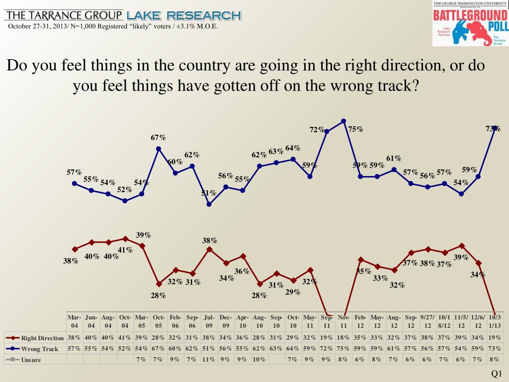 Do you feel things in the country are going in the right direction, or do you feel things have gotten off on the wrong track? Q1