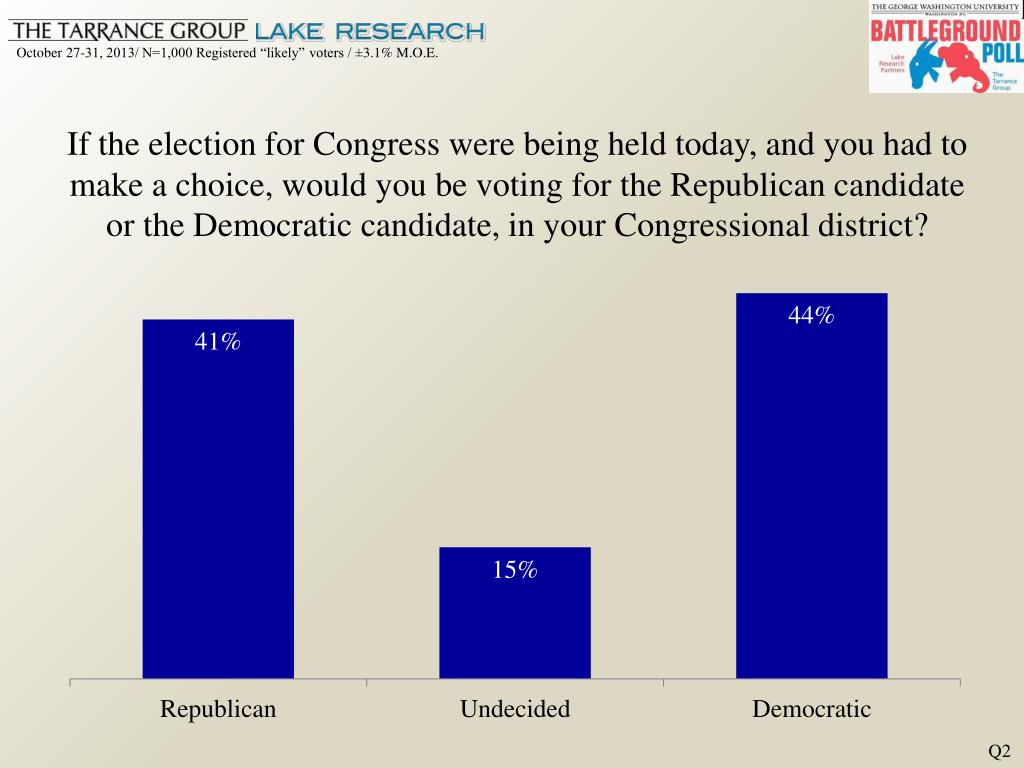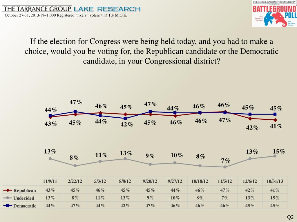 If the election for Congress were being held today, and you had to make a choice, would you be voting for, the Republican candidate or the Democratic candidate, in your Congressional district? Q2