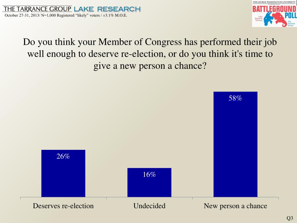 Do you think your Member of Congress has performed their job well enough to deserve re-election, or do you think it's time to give a new person a chance? Q3