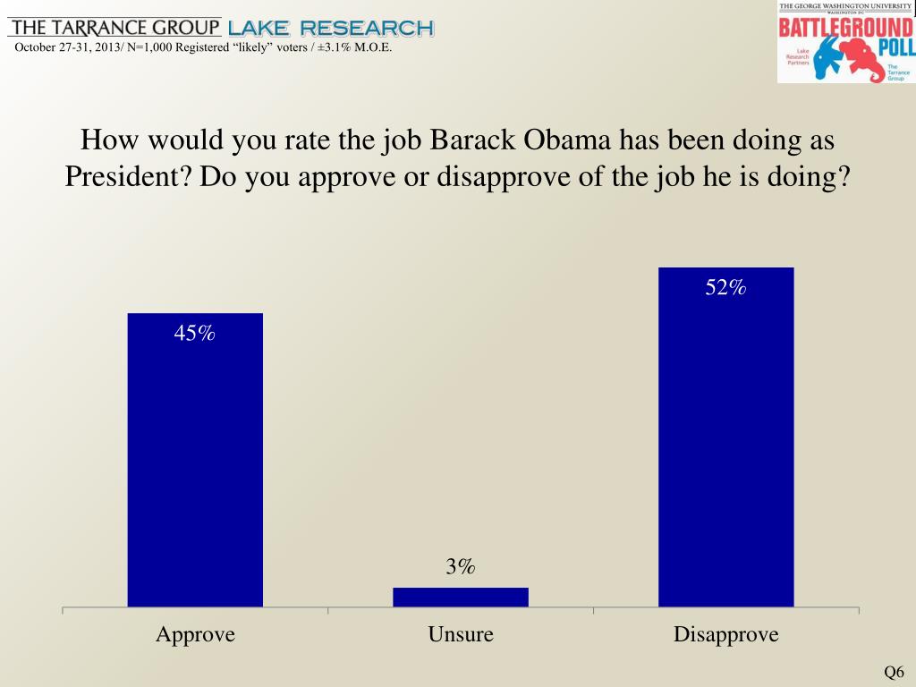 How would you rate the job Barack Obama has been doing as President? Do you approve or disapprove of the job he is doing? Q6