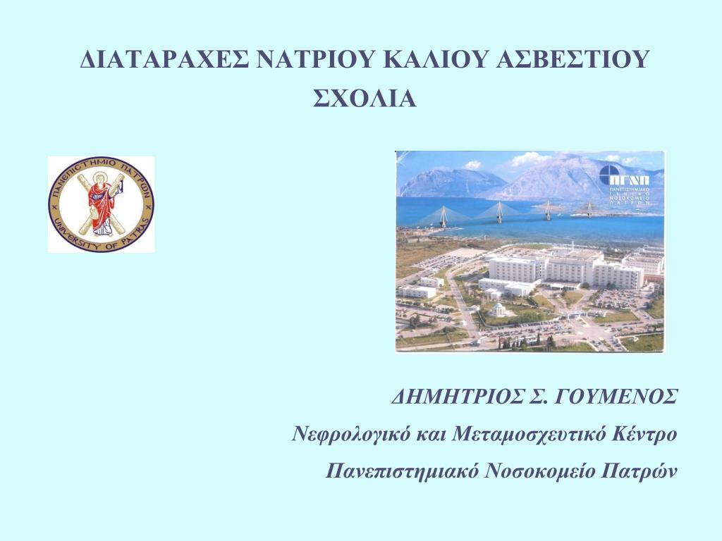 ΔΙΑΤΑΡΑΧΕΣ ΝΑΤΡΙΟΥ ΚΑΛΙΟΥ ΑΣΒΕΣΤΙΟΥΣΧΟΛΙΑ ΔΗΜΗΤΡΙΟΣ Σ. ΓΟΥΜΕΝΟΣ Νεφρολογικό και Μεταμοσχευτικό Κέντρο Πανεπιστημιακό Νοσοκομείο Πατρών
