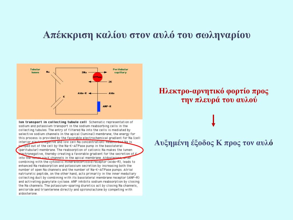 Απέκκριση καλίου στον αυλό του σωληναρίου Ηλεκτρο-αρνητικό φορτίο προς την πλευρά του αυλού Αυξημένη έξοδος Κ προς τον αυλό
