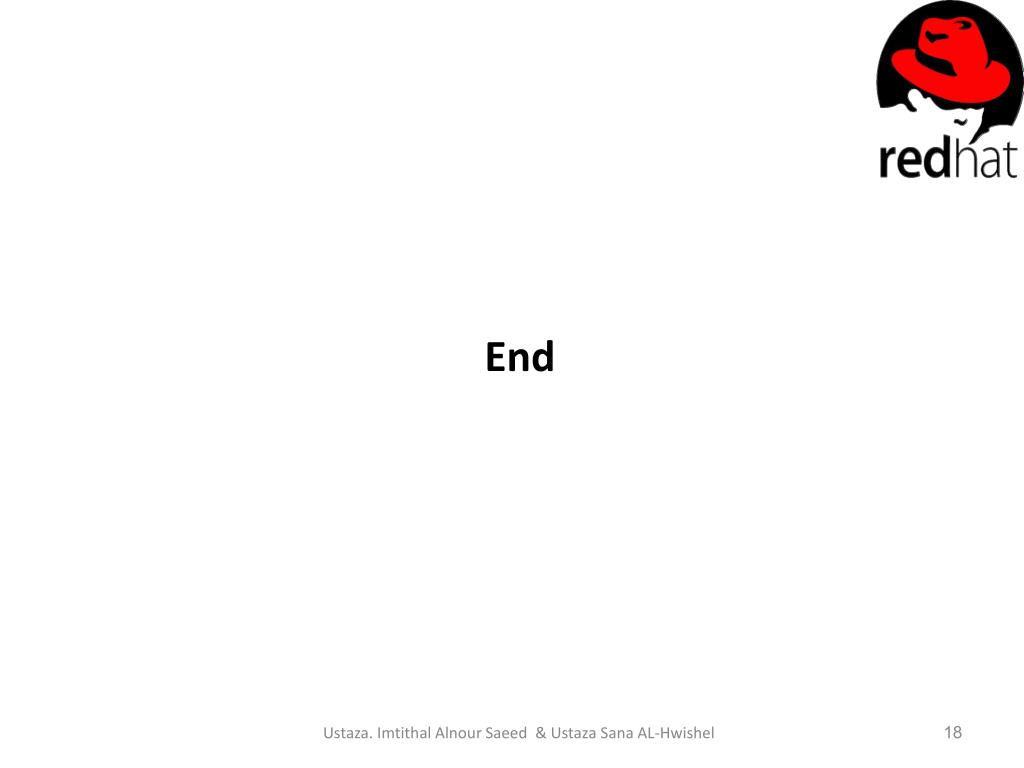 Umask(User Mask Symbolic mask: Umask -S • displays the existing default value for new files • For example the result of the last command may be like: u=rwx,g=rwx,o=rx • This means creating new files with the mode: -rw-rw-r-- And directories with the mode: Drwxrwxr- x Ustaza. Imtithal Alnour Saeed & Ustaza Sana AL-Hwishel