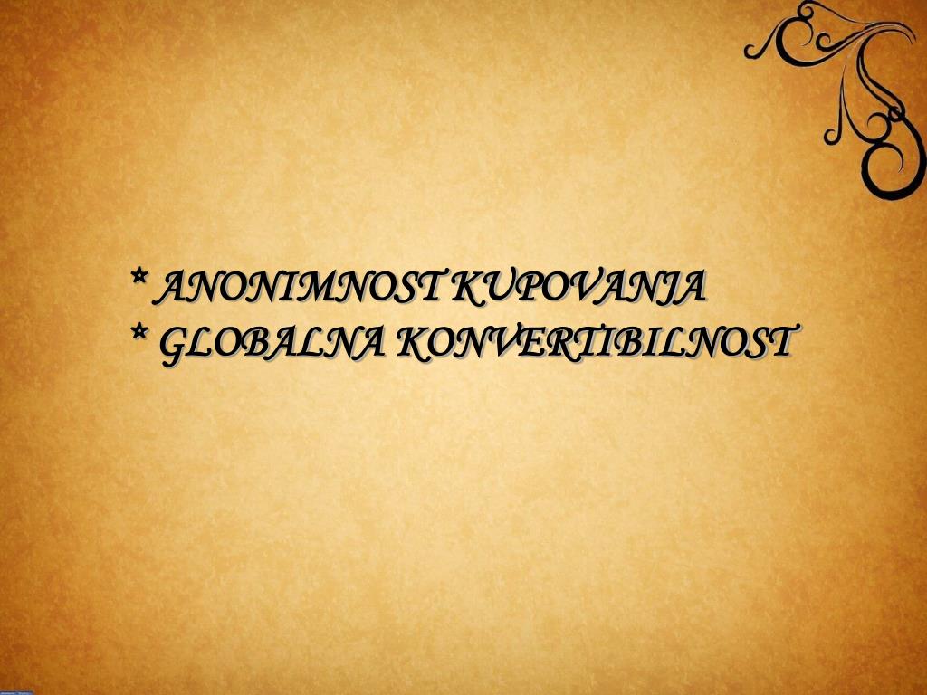 * ANONIMNOST KUPOVANJA * GLOBALNA KONVERTIBILNOST