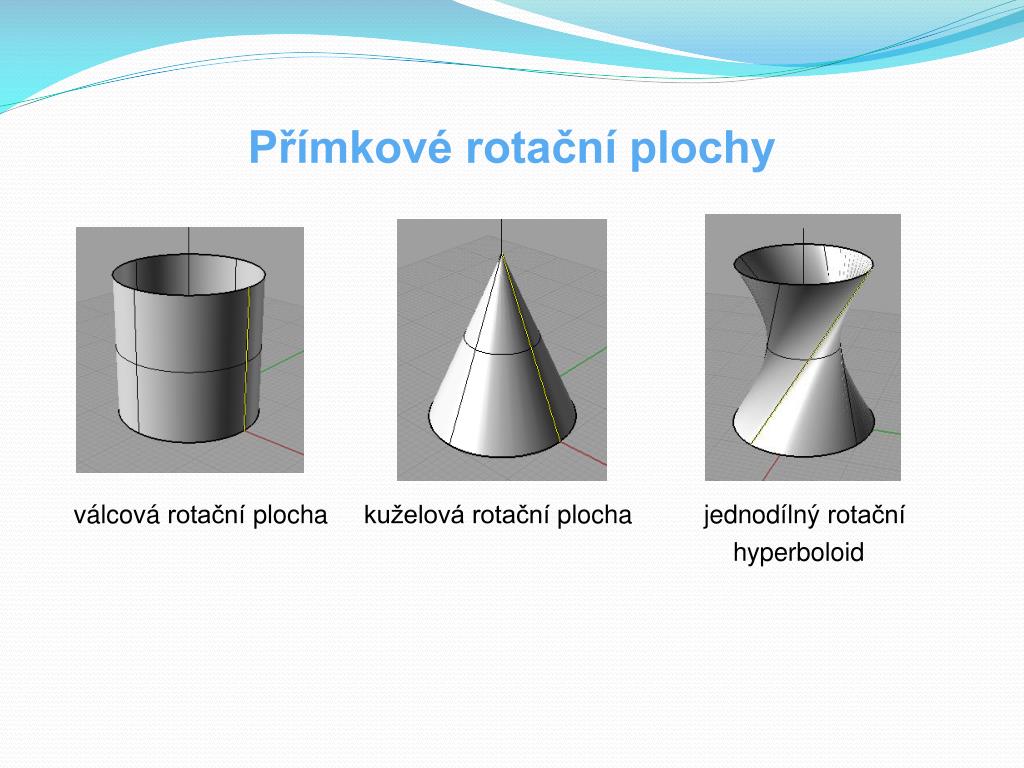 Přímkové rotační plochy válcová rotační plocha kuželová rotační plocha jednodílný rotační hyperboloid