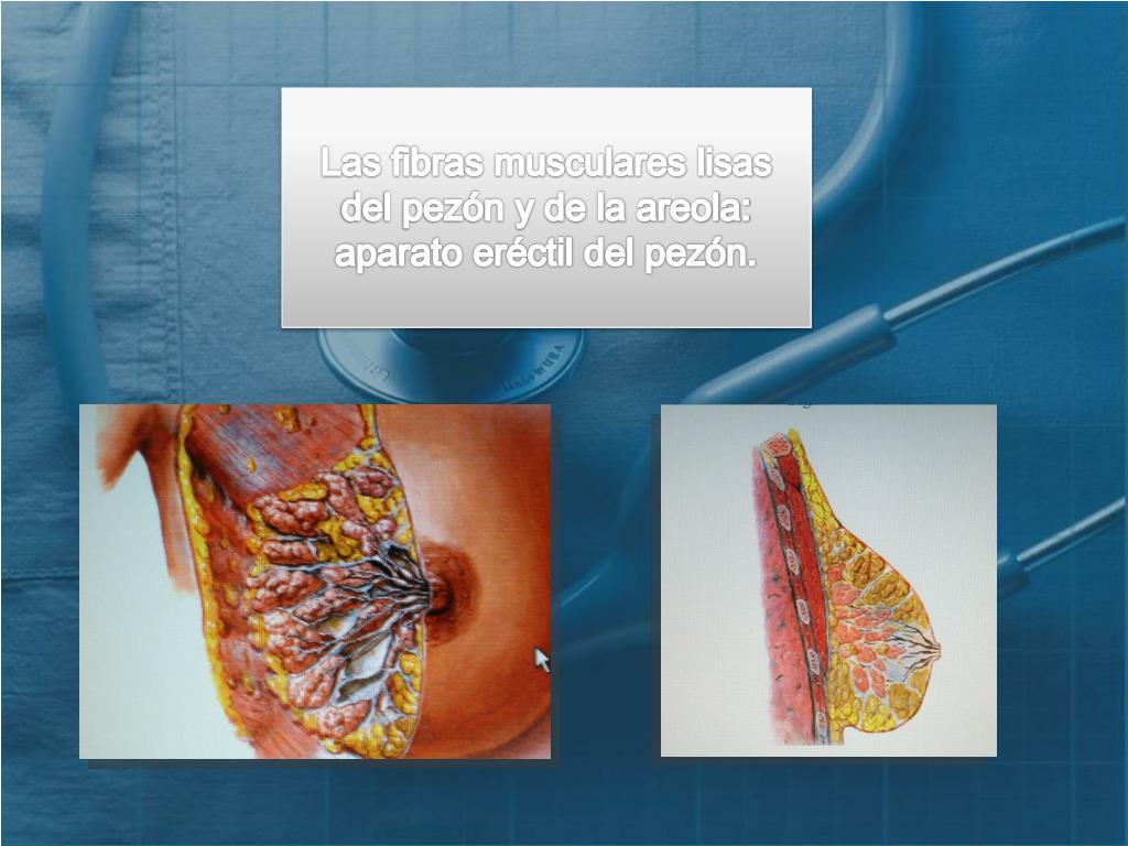 Las fibras musculares lisas del pezón y de la areola: aparato eréctil del pezón.