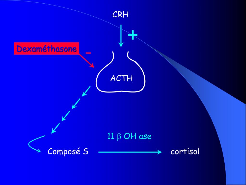 CRH + - Dexaméthasone ACTH 11 OH ase Composé S cortisol