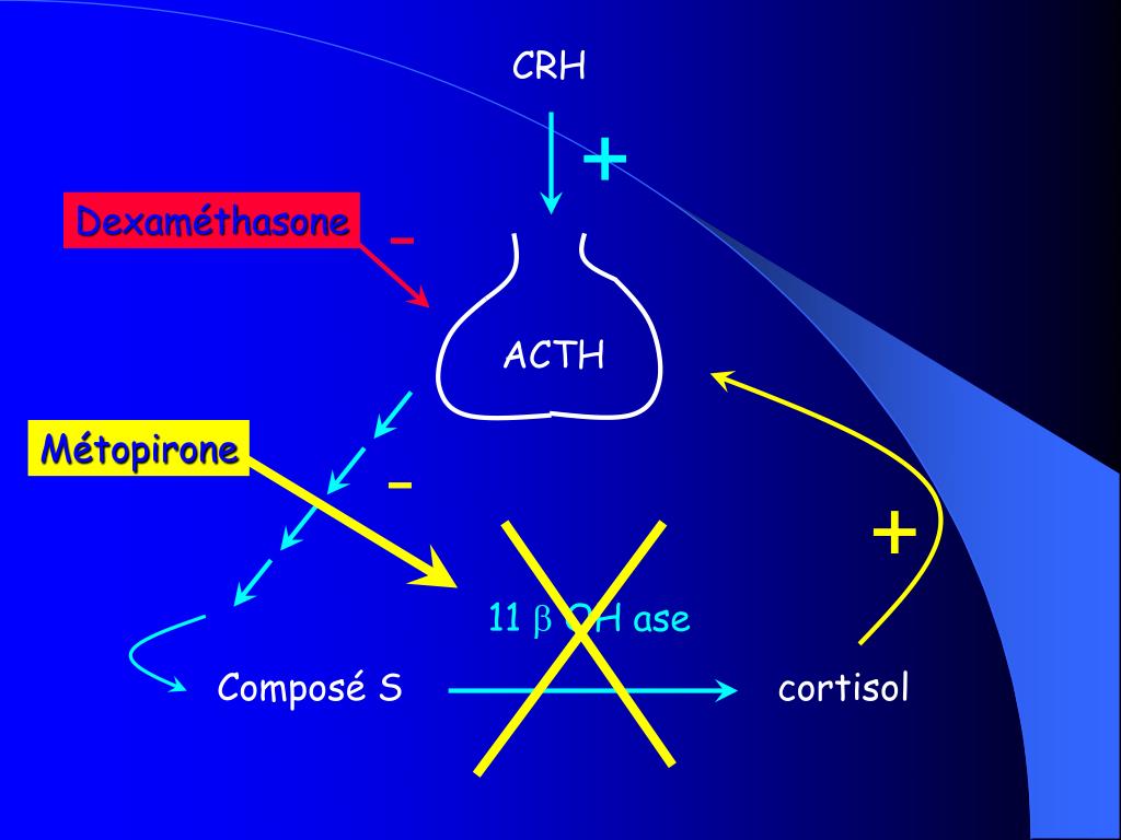 CRH + - Dexaméthasone ACTH - Métopirone + 11 OH ase Composé S cortisol