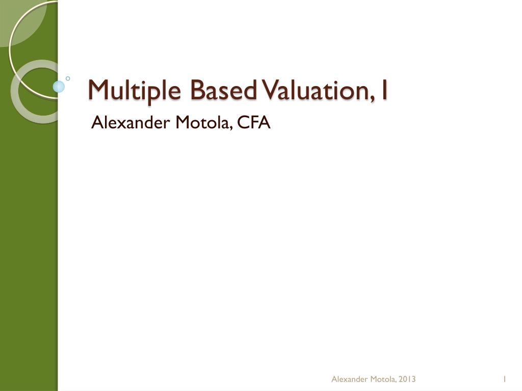 Multiple Based Valuation, I Alexander Motola, CFA Alexander Motola, 2013