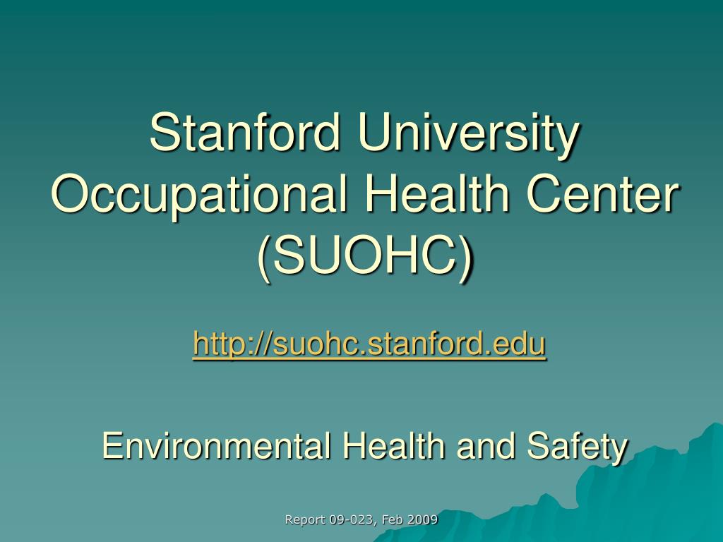 Stanford University Occupational Health Center (SUOHC)http://suohc.stanford.eduEnvironmental Health and Safety Report 09-023, Feb 2009