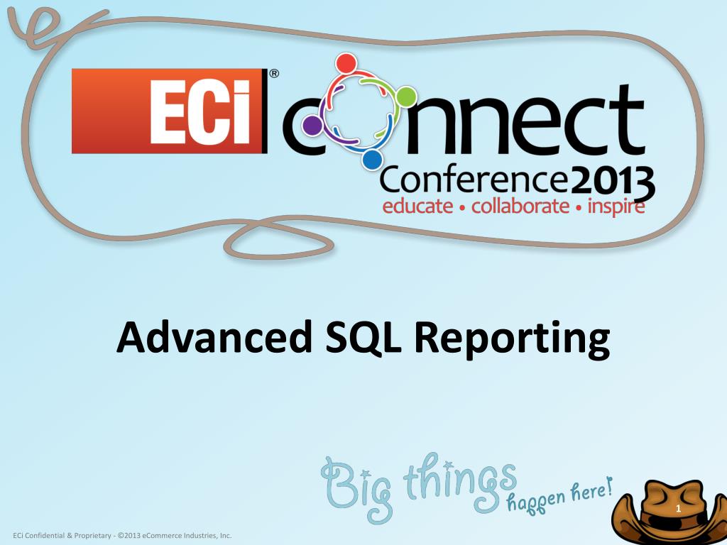 Advanced SQL Reporting SQL Source Line for C1 Reporting • Provider=SQLOLEDB.1;Password=db_user;Persist Security Info=True;User ID=netclient;Intitial Catalog=Ensite;Data Source= (LOCAL)\eci2 This is the universal source line for C1 to allow any report to run on any ECi DDMS machine.