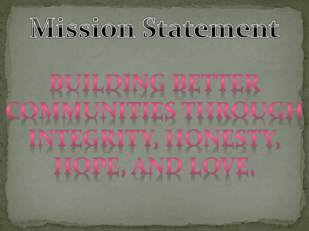 Mission Statement Building better communities through integrity, honesty, hope, and love.