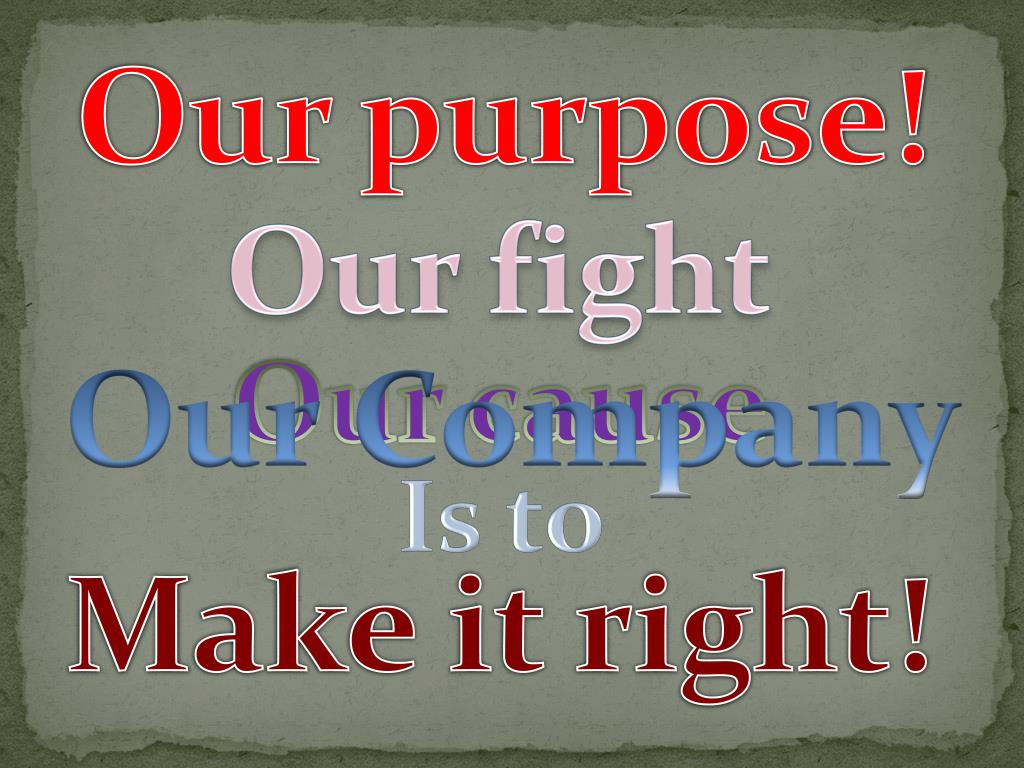 Our purpose! Our fight Our cause Our Company Is to Make it right!