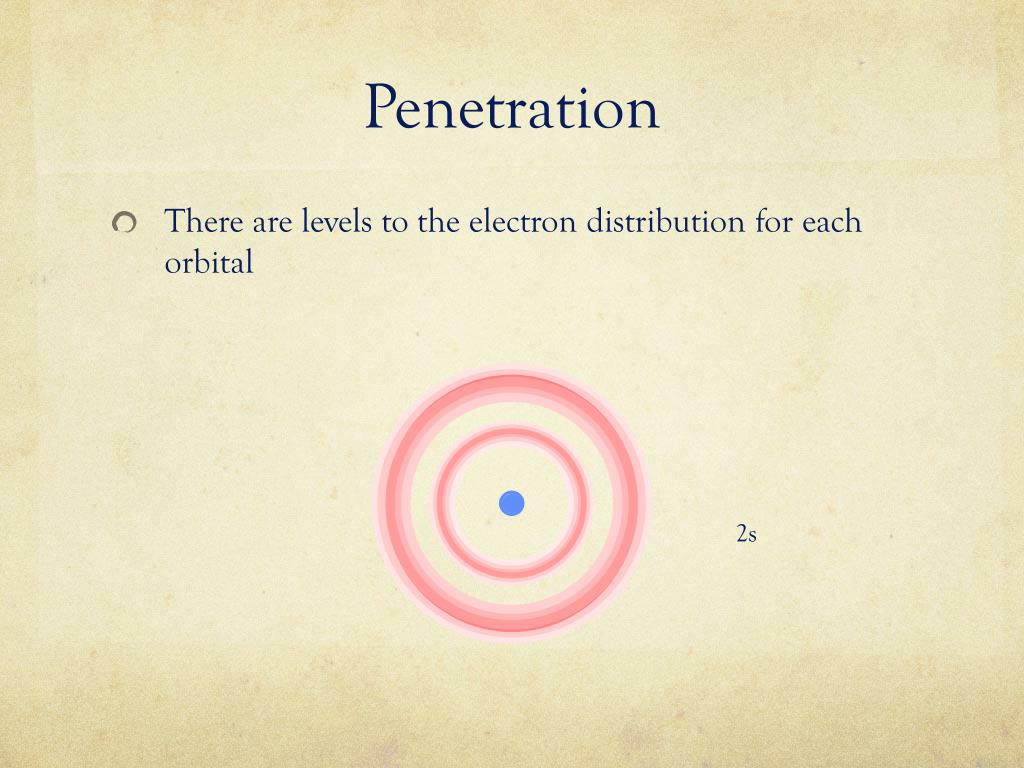 Penetration • There are levels to the electron distribution for each orbital 2s