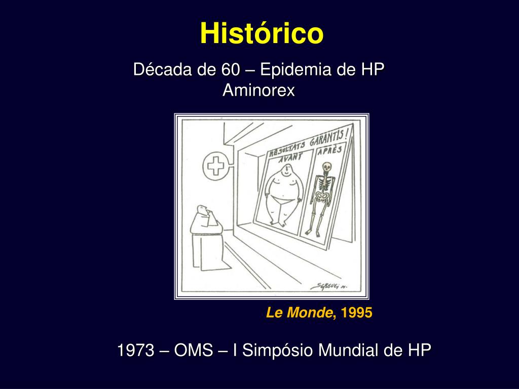Histórico Le Monde, 1995 Década de 60 – Epidemia de HP Aminorex 1973 – OMS – I Simpósio Mundial de HP