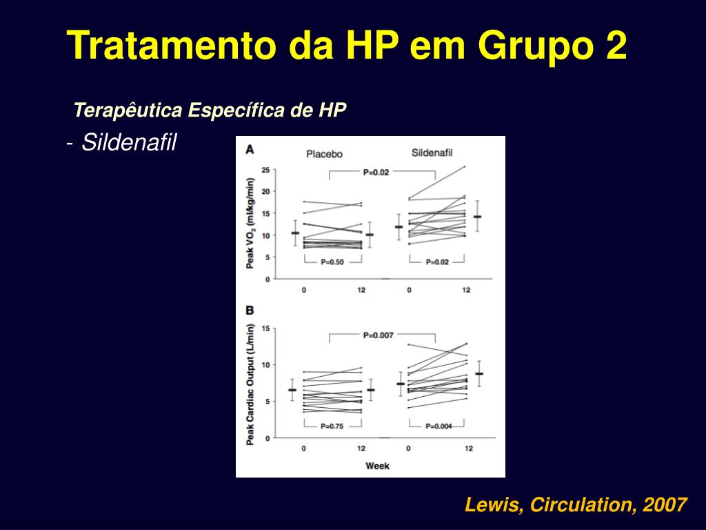 Tratamento da HP em Grupo 2 Terapêutica Específica de HP • Sildenafil Lewis, Circulation, 2007