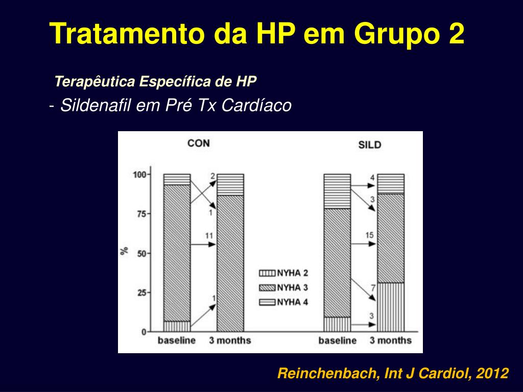 Tratamento da HP em Grupo 2 Terapêutica Específica de HP • Sildenafil em Pré Tx Cardíaco Reinchenbach, Int J Cardiol, 2012