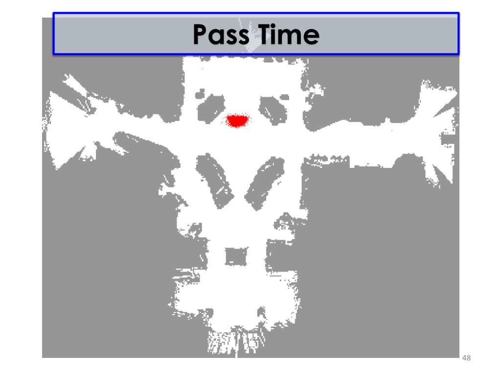 Resample Old Particles: (3,3) w=0.1 (2,1) w=0.9 (2,1) w=0.9 (3,1) w=0.4 (3,2) w=0.3 (2,2) w=0.4 (1,1) w=0.4 (3,1) w=0.4 (2,1) w=0.9 (3,2) w=0.3 Rather than tracking weighted samples, we resample N times, we choose from our weighted sample distribution (i.e. draw with replacement) This is analogous to renormalizing the distribution Now the update is complete for this time step, continue with the next one New Particles: (2,1) w=1 (2,1) w=1 (2,1) w=1 (3,2) w=1 (2,2) w=1 (2,1) w=1 (1,1) w=1 (3,1) w=1 (2,1) w=1 (1,1) w=1