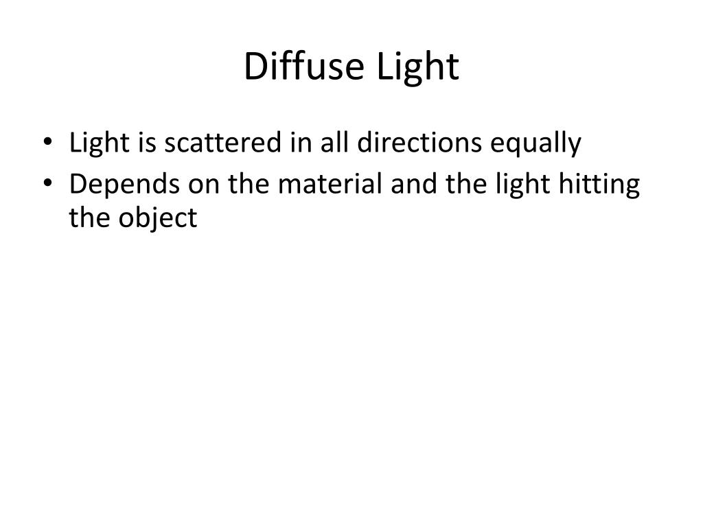 Diffuse Light • Light is scattered in all directions equally • Depends on the material and the light hitting the object