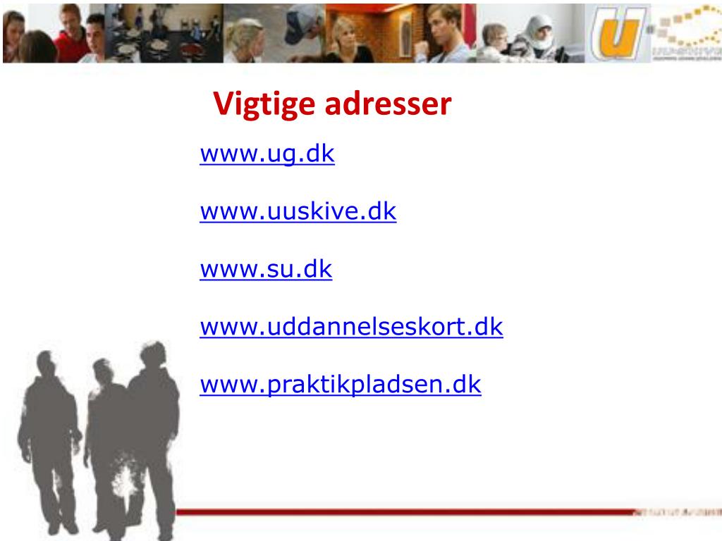 Vigtige adresser www.ug.dk www.uuskive.dk www.su.dk www.uddannelseskort.dk www.praktikpladsen.dk