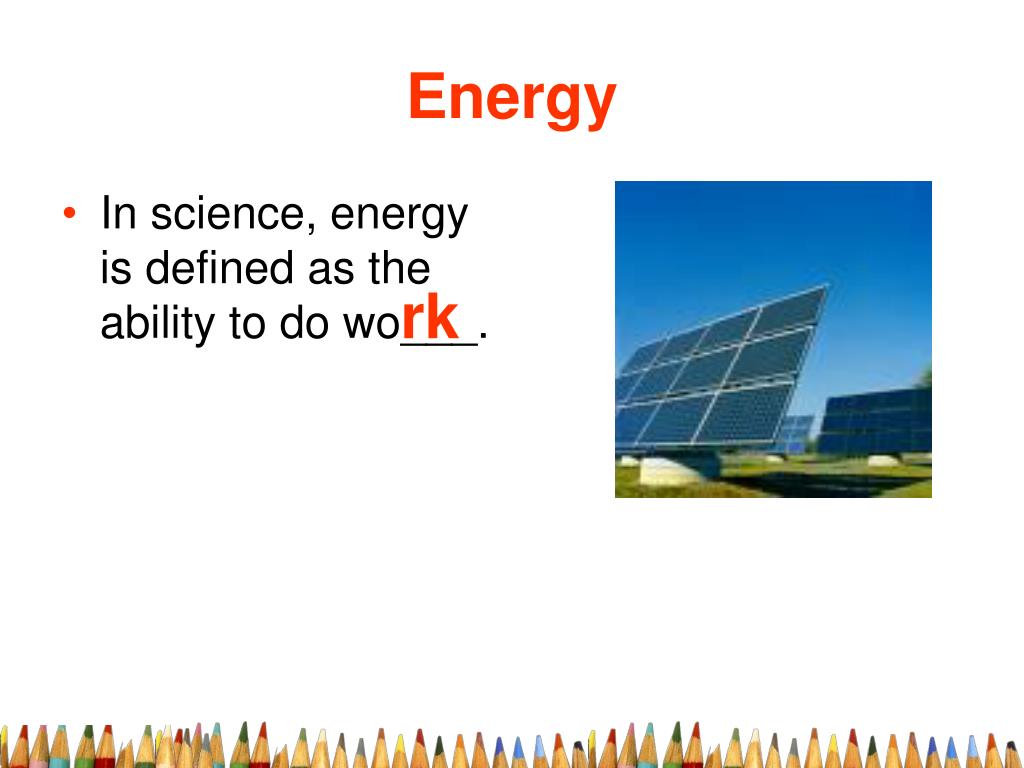 Energy • In science, energy is defined as the ability to do wo___. rk