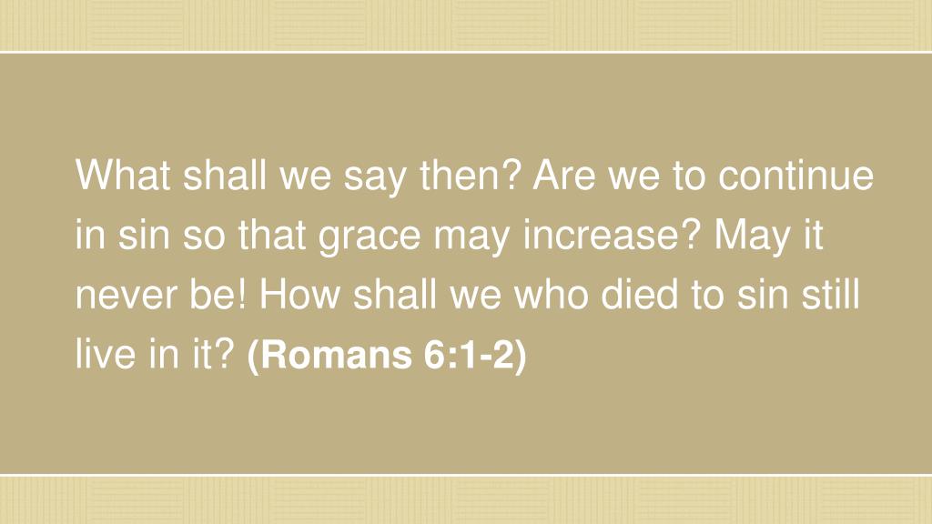 What shall we say then? Are we to continue in sin so that grace may increase? May it never be! How shall we who died to sin still live in it? (Romans 6:1-2)