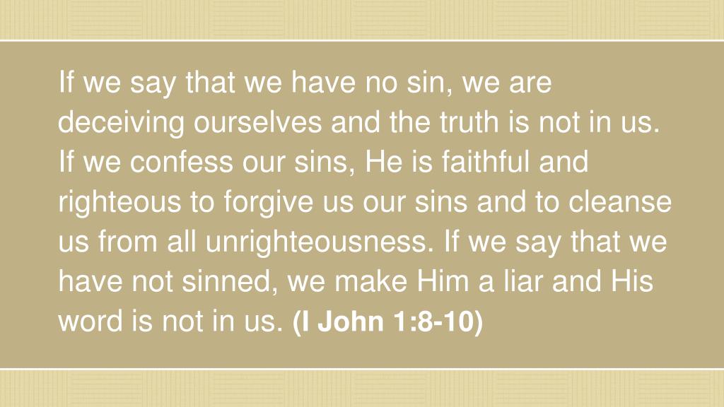 If we say that we have no sin, we are deceiving ourselves and the truth is not in us. If we confess our sins, He is faithful and righteous to forgive us our sins and to cleanse us from all unrighteousness. If we say that we have not sinned, we make Him a liar and His word is not in us. (I John 1:8-10)