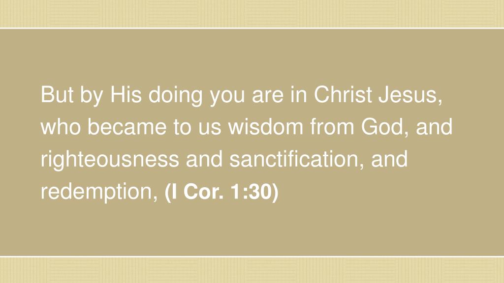 But by His doing you are in Christ Jesus, who became to us wisdom from God, and righteousness and sanctification, and redemption, (I Cor. 1:30)