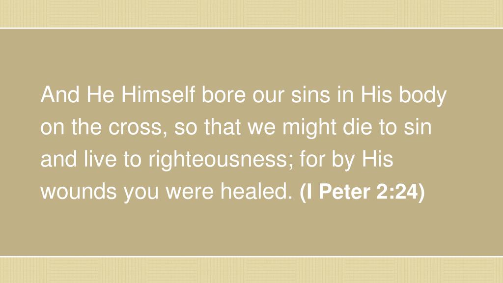 And He Himself bore our sins in His body on the cross, so that we might die to sin and live to righteousness; for by His wounds you were healed. (I Peter 2:24)