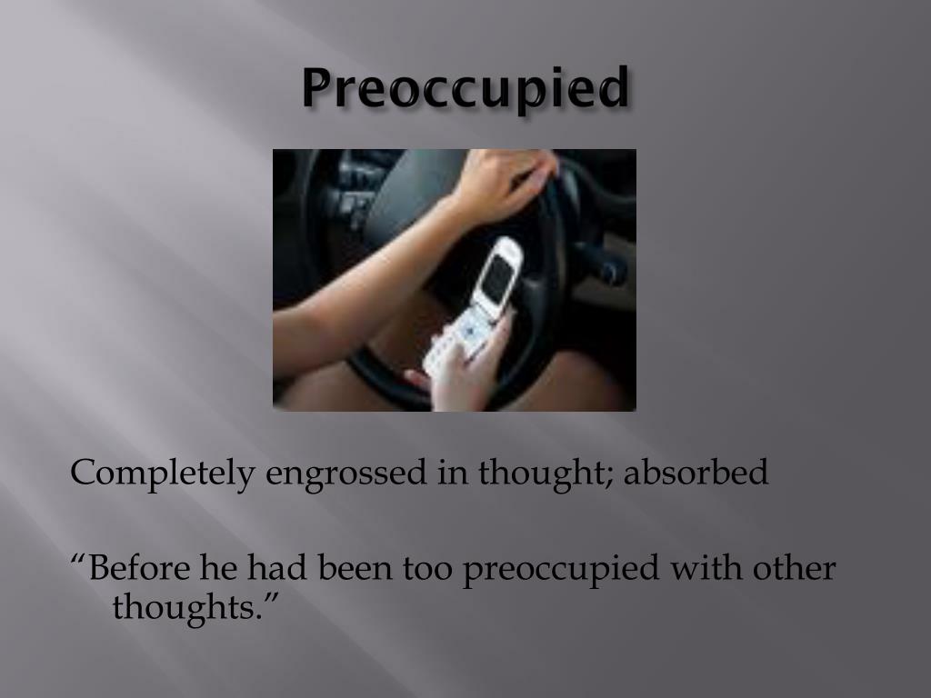Preoccupied Completely engrossed in thought; absorbed “Before he had been too preoccupied with other thoughts.”