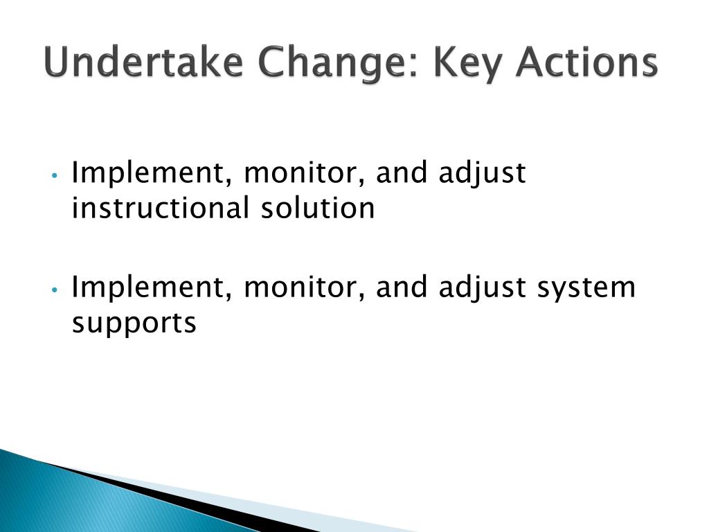 Undertake Change: Key Actions • Implement, monitor, and adjust instructional solution • Implement, monitor, and adjust system supports