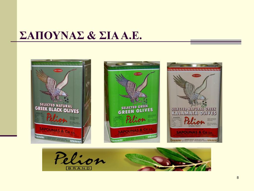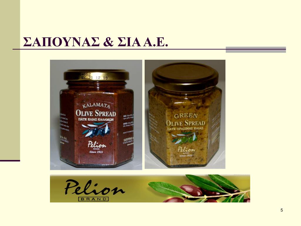 1921. ΣΑΠΟΥΝΑΣ & ΣΙΑ Α.Ε. Ελιές, πολτός ελιάς, σάλτσες τομάτας, ξίδι, ελαιόλαδο. Β΄ ΒΙΠΕ, Τ.Κ. 37500, Βελεστίνο, Μαγνησία Τηλ.:24250·24240 Fax: 24250·24280 pelion-brand@vol.forthnet.gr www.olivefood.gr. ΣΑΠΟΥΝΑΣ & ΣΙΑ Α.Ε. ΣΑΠΟΥΝΑΣ & ΣΙΑ Α.Ε. ΣΑΠΟΥΝΑΣ & ΣΙΑ Α.Ε. ΣΑΠΟΥΝΑΣ & ΣΙΑ Α.Ε.