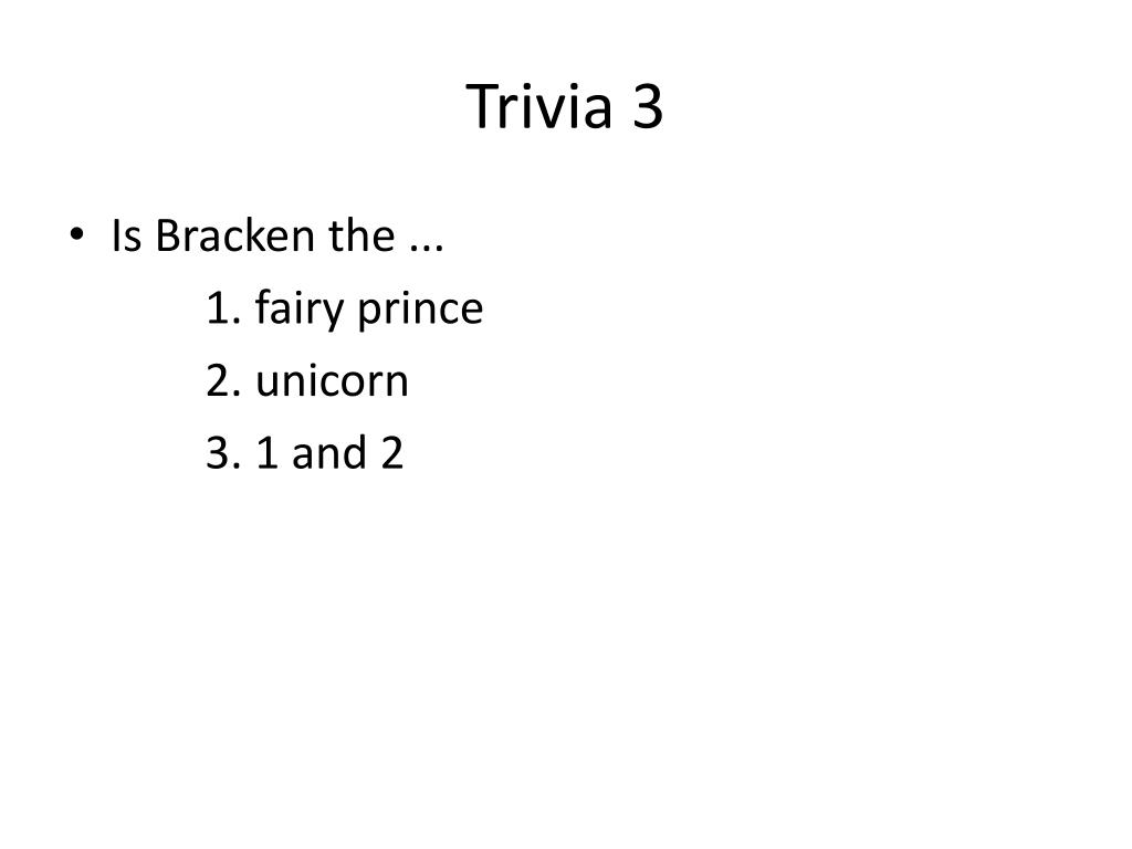 Trivia 3 • Is Bracken the ... 1. fairy prince 2. unicorn 3. 1 and 2