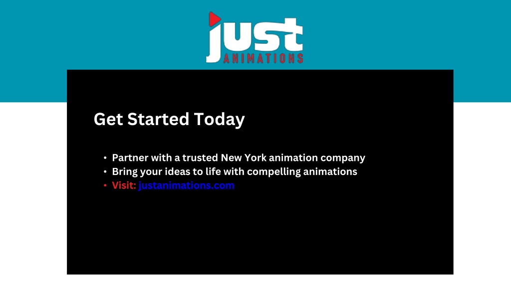 Get Started Today • Partner with a trusted New York animation company • Bring your ideas to life with compelling animations • Visit: justanimations.com