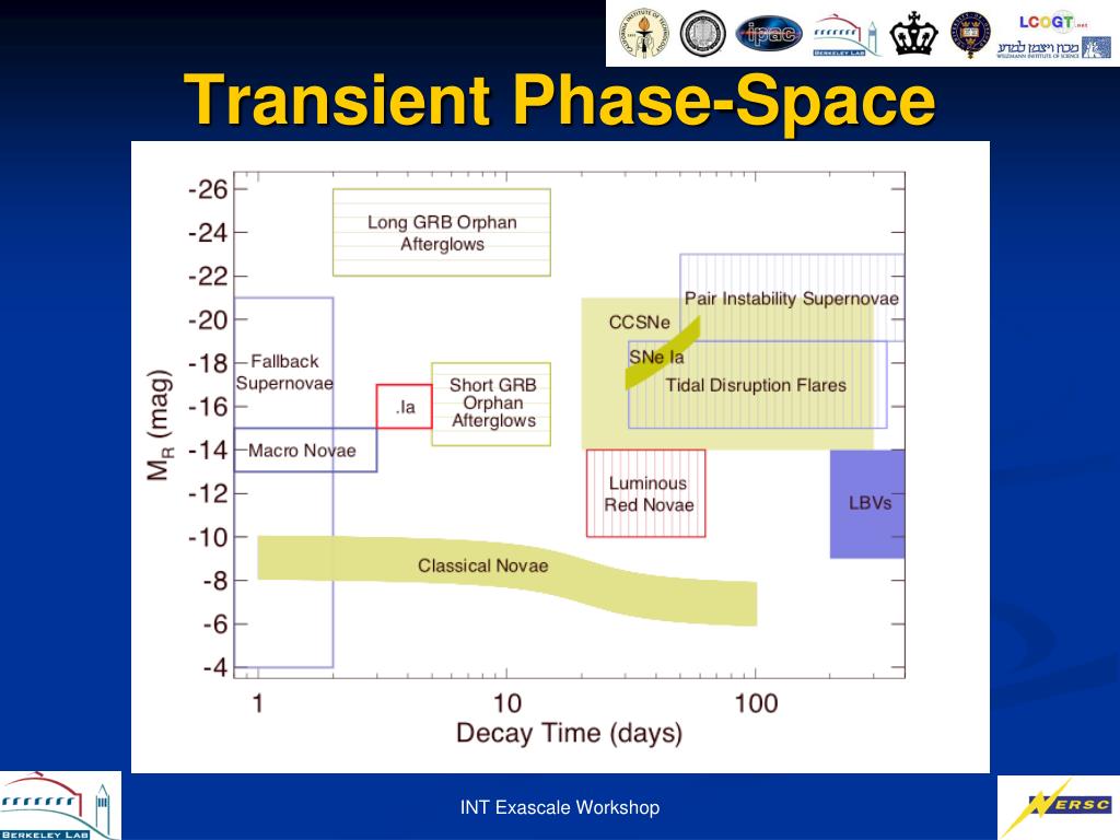 Near Future Next Generation Transient Survey (aka PTF-II) - Upgrade to 5X PTF: 36 sq. deg. (~ 1 billion pixels) - Would like to explore the sky on 100s timescales - Turnaround in 10-20 minutes with list of new candidates - Ingest SDSS, BOSS, NED, etc. catalogs to refine our understanding of these candidates in real-time - Able to handle Advanced LIGO, neutrino detectors, etc. INT Exascale Workshop