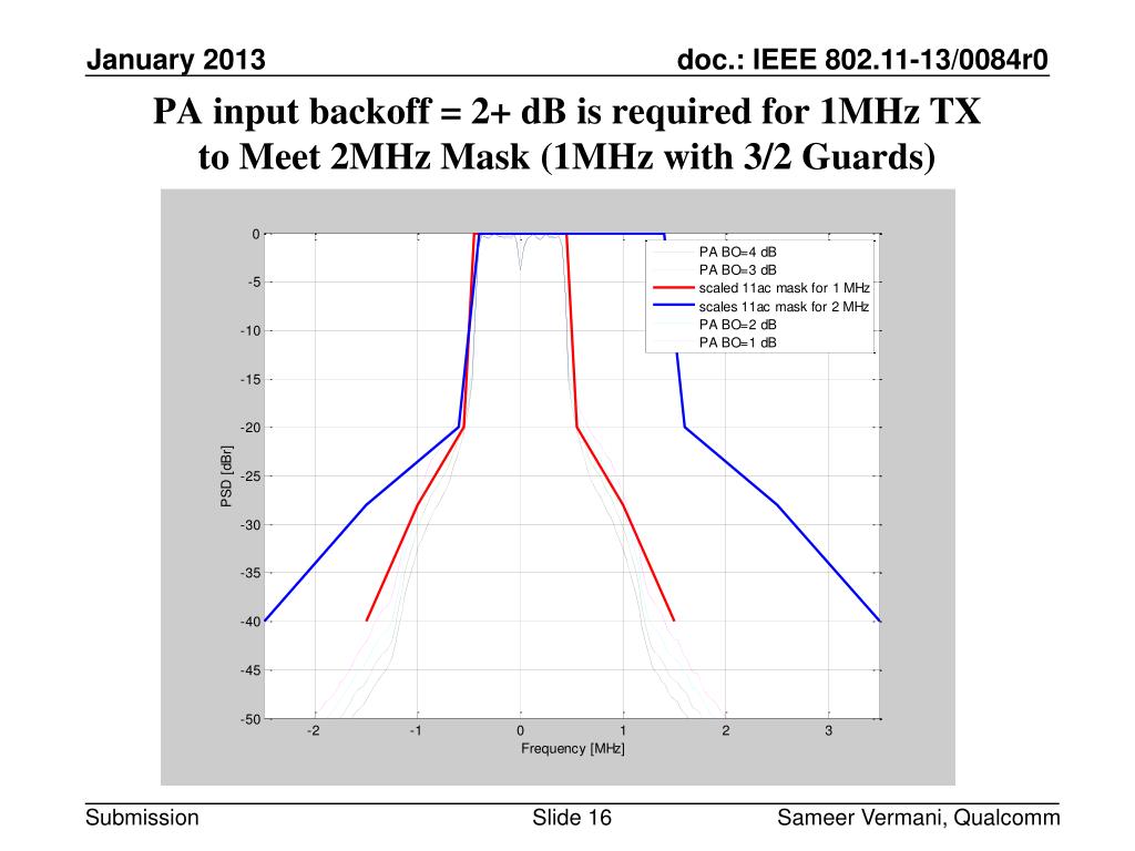 PA input backoff = 2+ dB is required for 1MHz TX to Meet 2MHz Mask (1MHz with 3/2 Guards) Sameer Vermani, Qualcomm