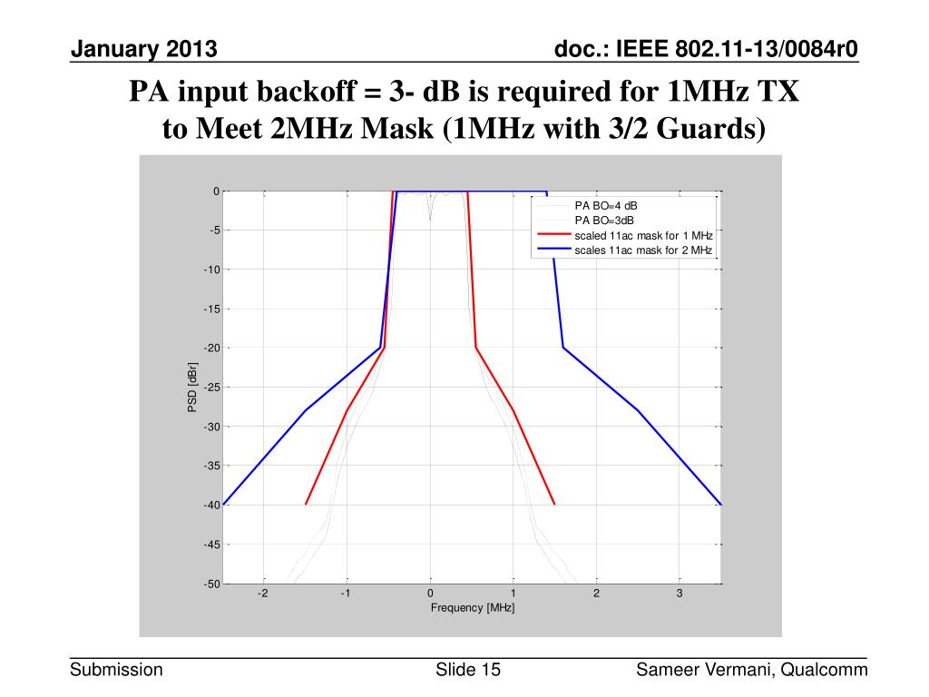 PA input backoff = 3- dB is required for 1MHz TX to Meet 2MHz Mask (1MHz with 3/2 Guards) Sameer Vermani, Qualcomm