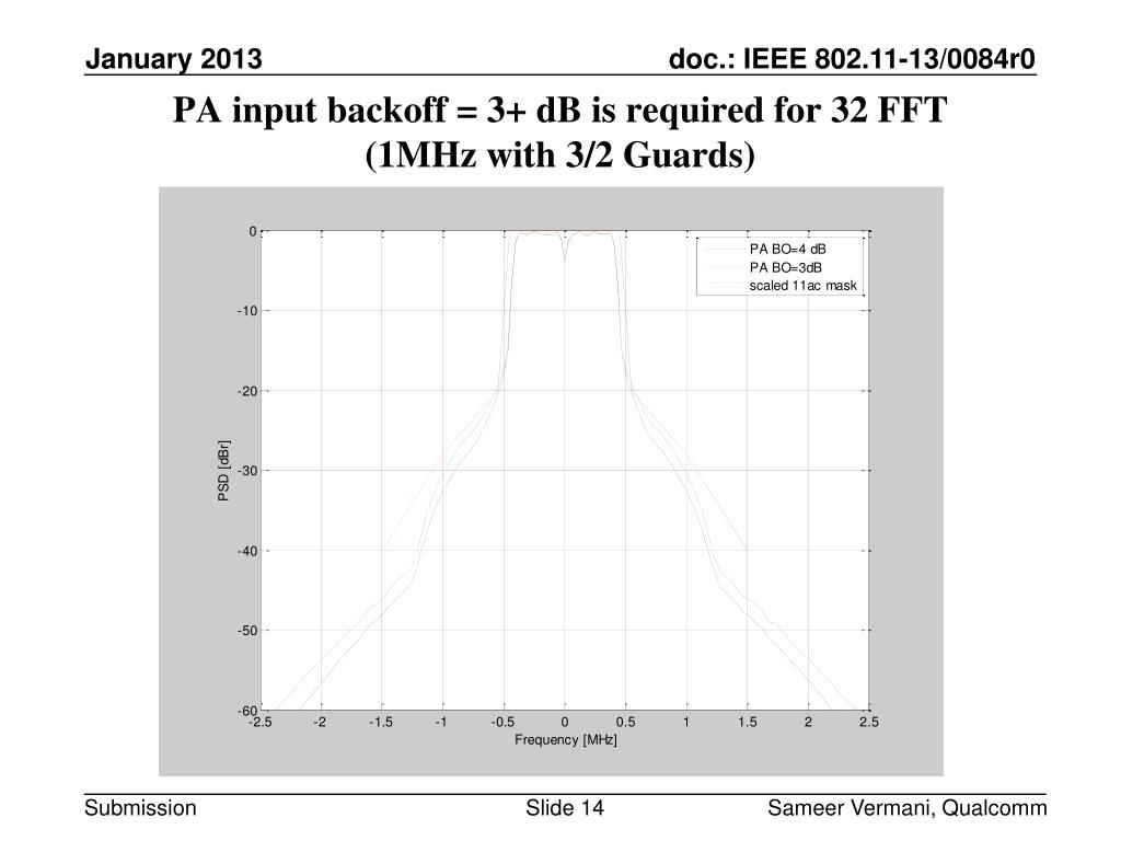 PA input backoff = 3+ dB is required for 32 FFT (1MHz with 3/2 Guards) Sameer Vermani, Qualcomm