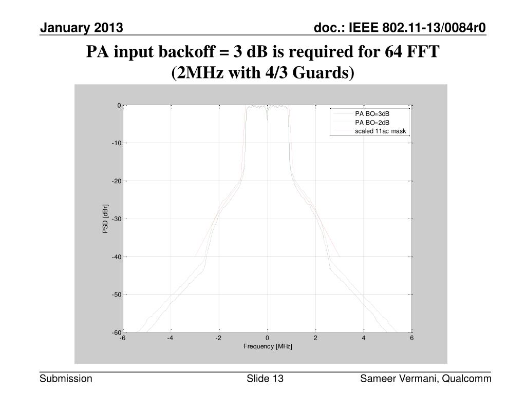 PA input backoff = 3 dB is required for 64 FFT (2MHz with 4/3 Guards) Sameer Vermani, Qualcomm