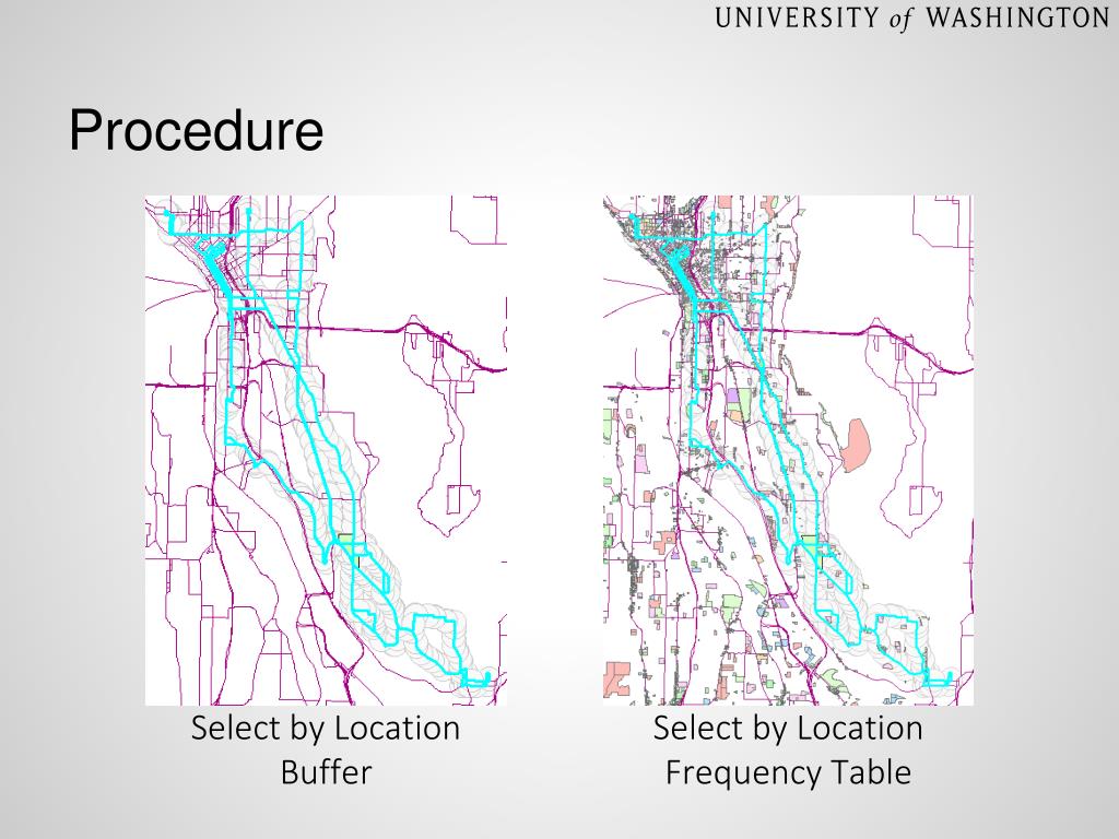 Procedure Select by Location Buffer Select by Location Frequency Table