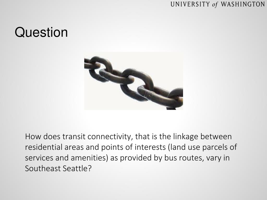 Question How does transit connectivity, that is the linkage between residential areas and points of interests (land use parcels of services and amenities) as provided by bus routes, vary in Southeast Seattle?