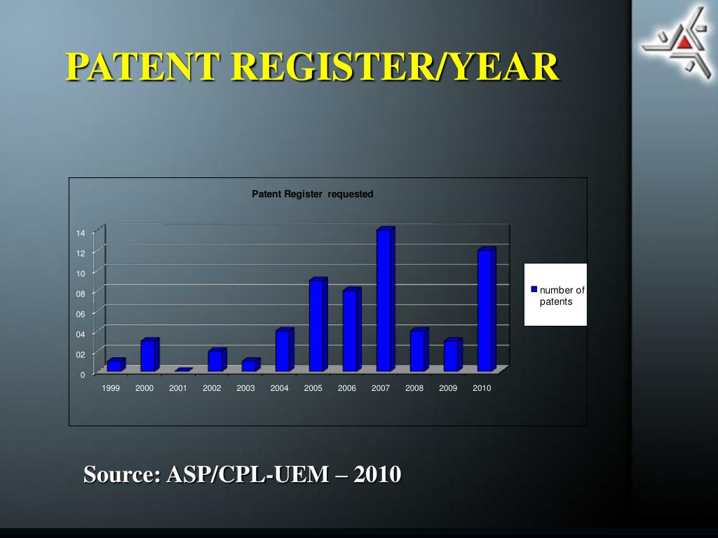 PATENT REGISTER/YEAR Source: ASP/CPL-UEM – 2010