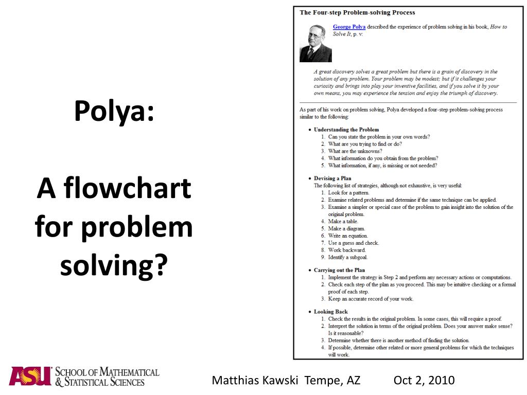 The role of problem solving and discovery in the undergraduate curriculum. Matthias Kawski Associate Director for Undergraduate Programs School of Mathematical & Statistical Sciences Arizona State University. Outline. Problem solving ? What do we actually teach