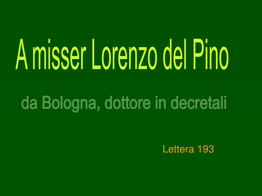 A misser Lorenzo del Pino da Bologna, dottore in decretali Lettera 193