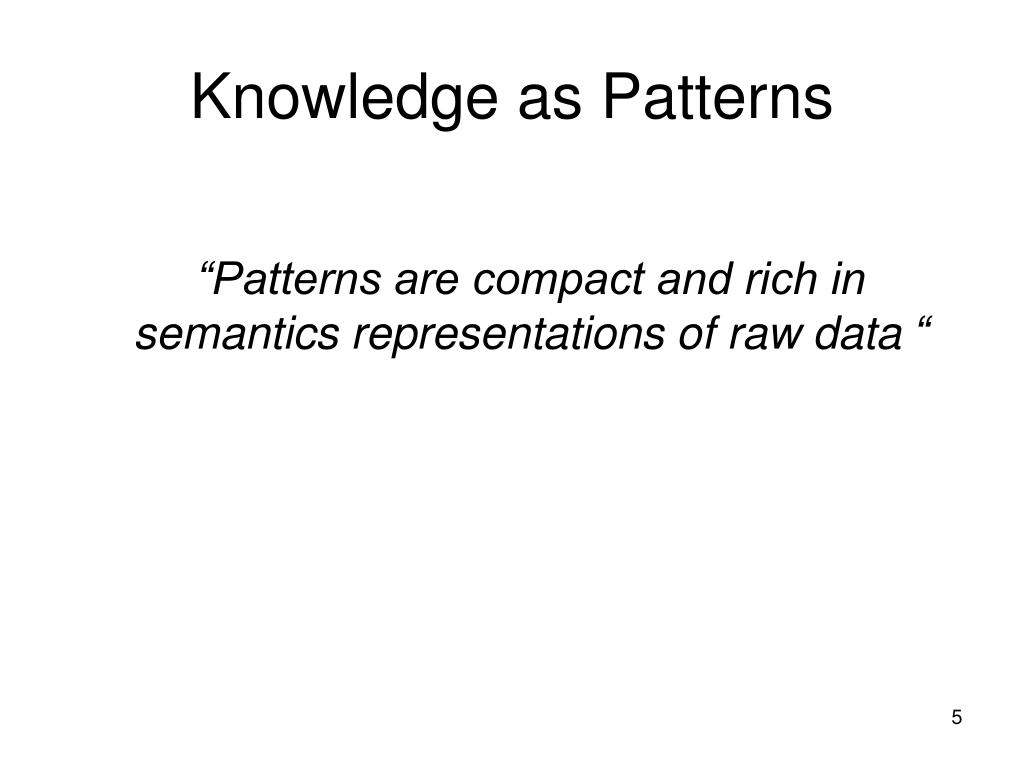 Knowledge as Patterns “Patterns are compact and rich in semantics representations of raw data“